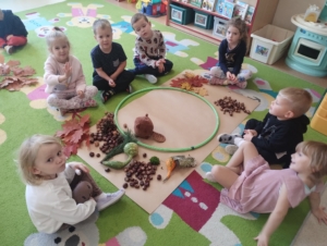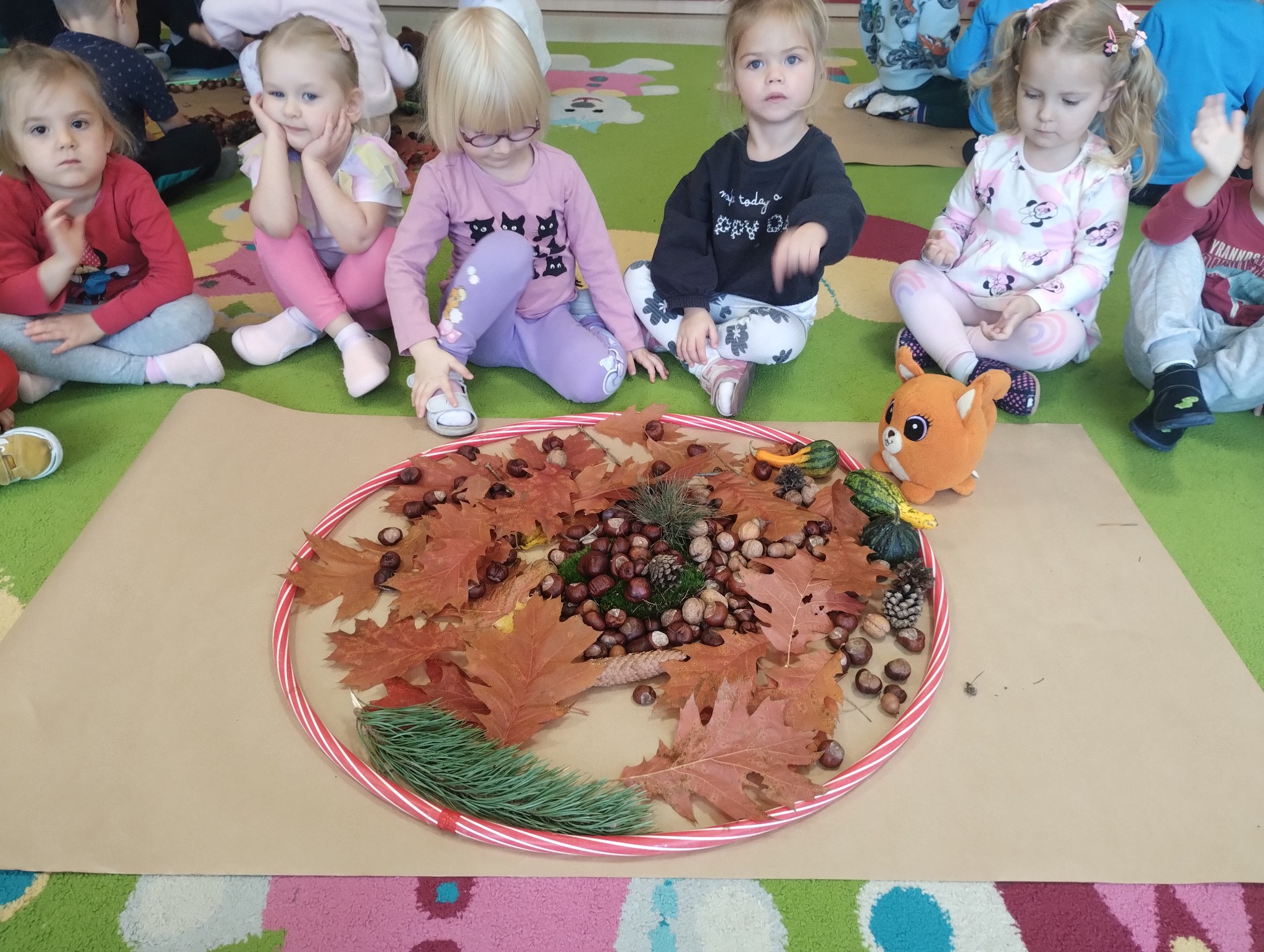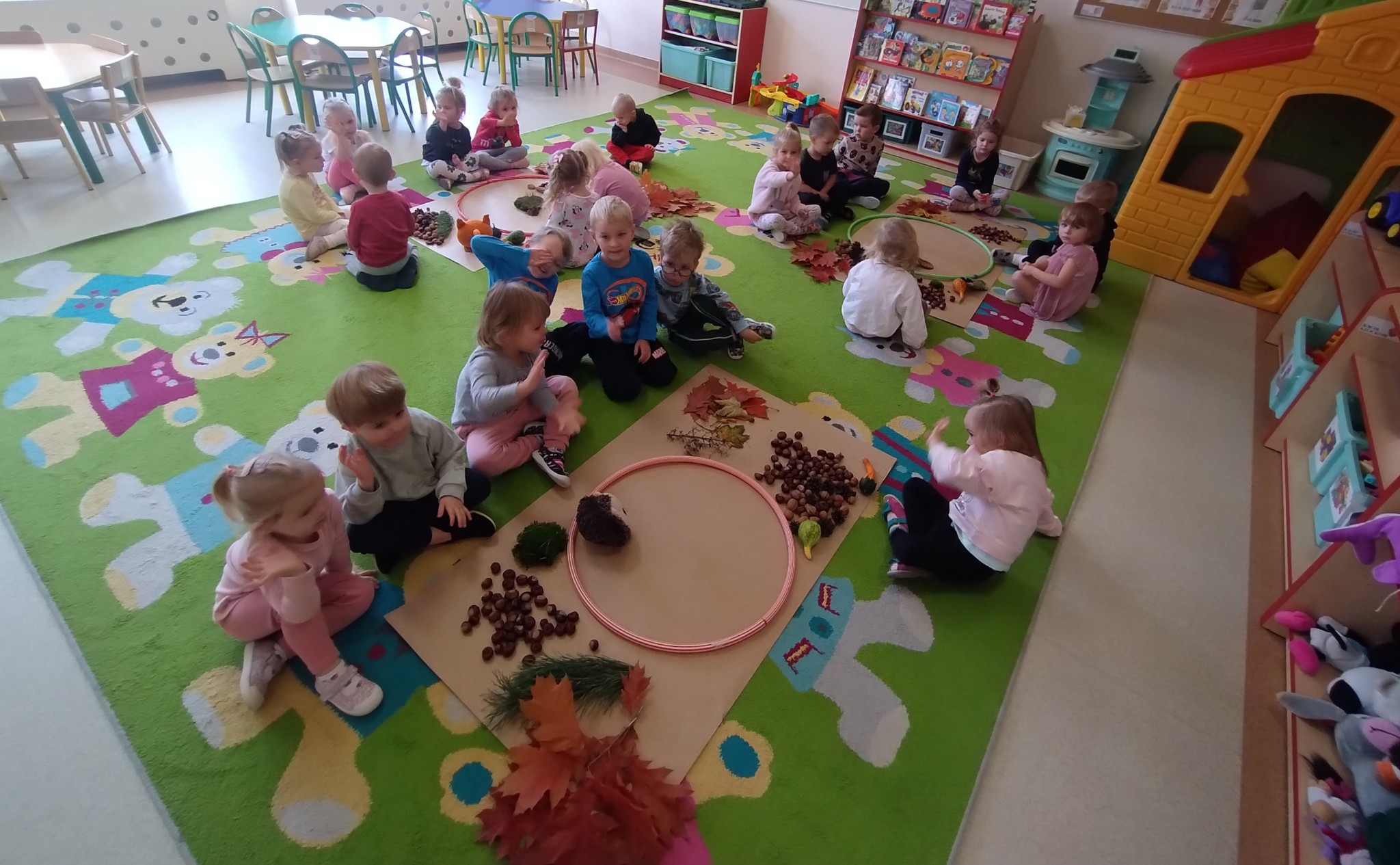 Grupa „Smerfów ” zrealizowała październikowe zadanie w ramach ogólnopolskiego projektu edukacyjnego „Kreatywny przedszkolak, kreatywne dziecko”. Dzieci, pełne pomysłów i radości, wykorzystały dary jesieni, aby stworzyć na dywanie piękne, kolorowe kompozycje jesienne. Powstały prawdziwe małe dzieła sztuki, a przy tym była to doskonała okazja do rozwijania wyobraźni, współpracy i kreatywności!