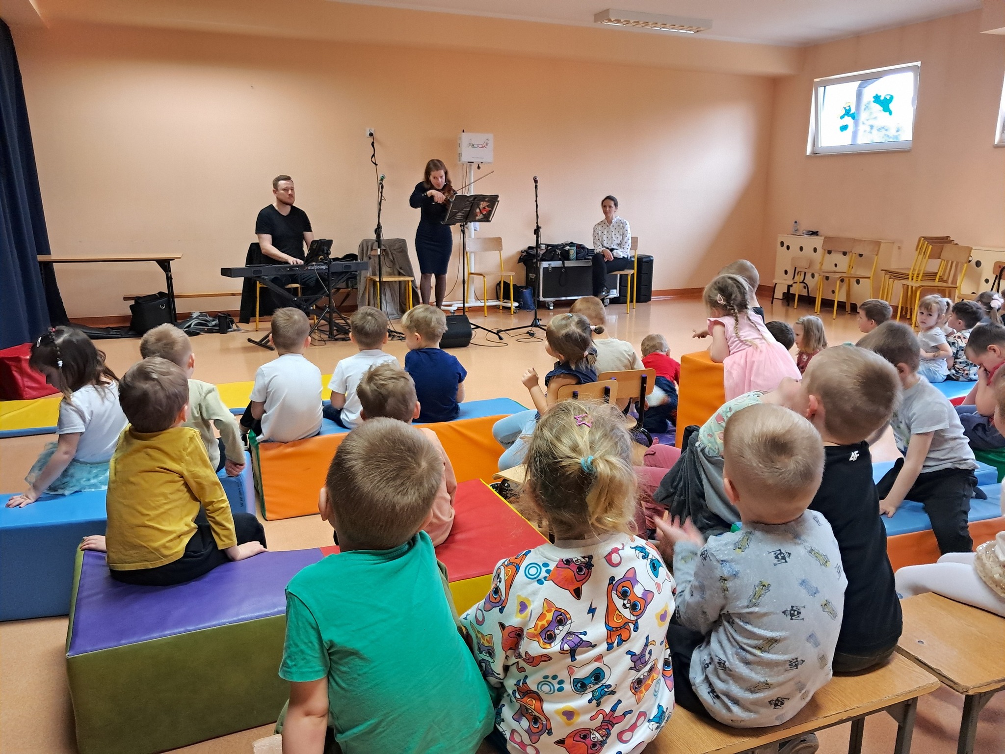 W piątkowy poranek gościliśmy w naszym przedszkolu Mobilną Filharmonię – grupę muzyków, którzy zagrali dla dzieci niecodzienny koncert pt. Cztery pory roku. Muzyka na żywo sprawiła wiele radości i zadowolenia wśród dzieci. Artyści pokazali moc muzyki oraz moc przekazu.