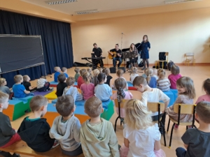 Podczas koncertu przedszkolaki miały okazję posłuchać pięknych utworów wykonywanych na różnych instrumentach oraz dowiedzieć się ciekawostek o świecie muzyki.