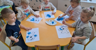 Smerfy podczas zabaw oddechowych ćwiczyły mięśnie aparatu artykulacyjnego.  „Praca” ze słomką wymagała od nich skupienia uwagi –  musiały się zastanowić i skoncentrować, co trzeba zrobić aby zassać dany przedmiot. Przy okazji tych ćwiczeń powstały prace przedstawiające gwiazdozbiór Wielkiej Niedźwiedzicy.
