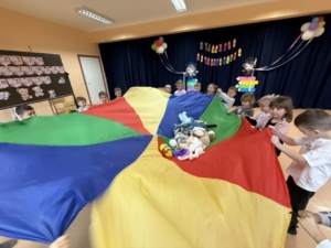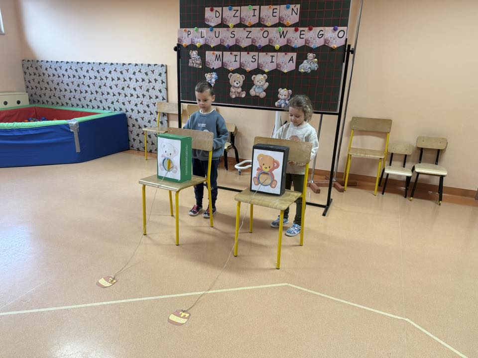 Nasze przedszkolaki przyszły z ulubionymi pluszakami i wspólnie z nimi brały udział w misiowych zabawach i konkurencjach. Było dużo śmiechu, ruchu i świetnej zabawy! Misie pomagały nam tańczyć, skakać, liczyć, a nawet rywalizować w misiowych zadaniach. Każde dziecko mogło pochwalić się swoją ukochaną przytulanką i spędzić z nią wyjątkowy czas. To był naprawdę misiowy i wyjątkowy dzień w naszym przedszkolu!