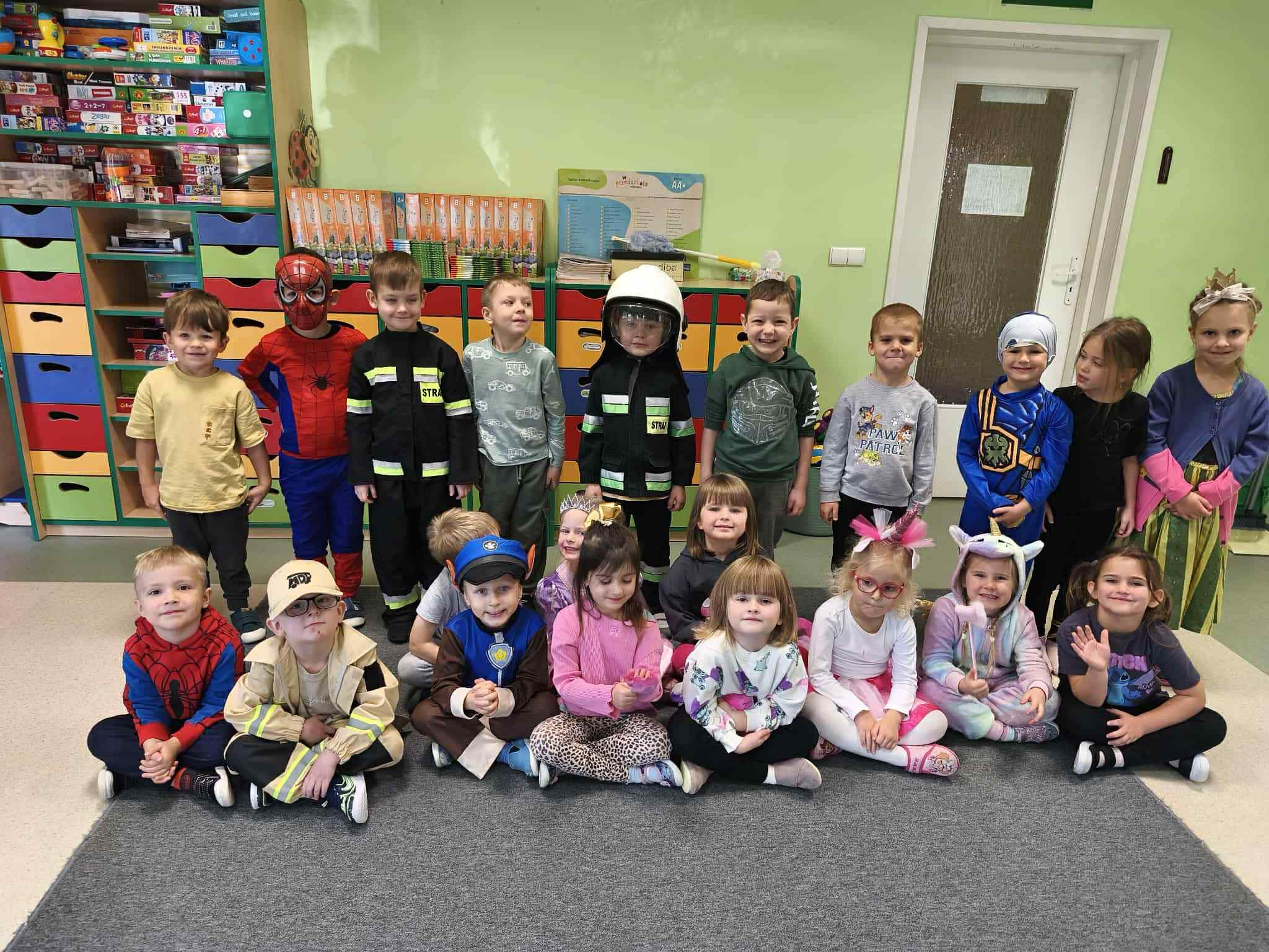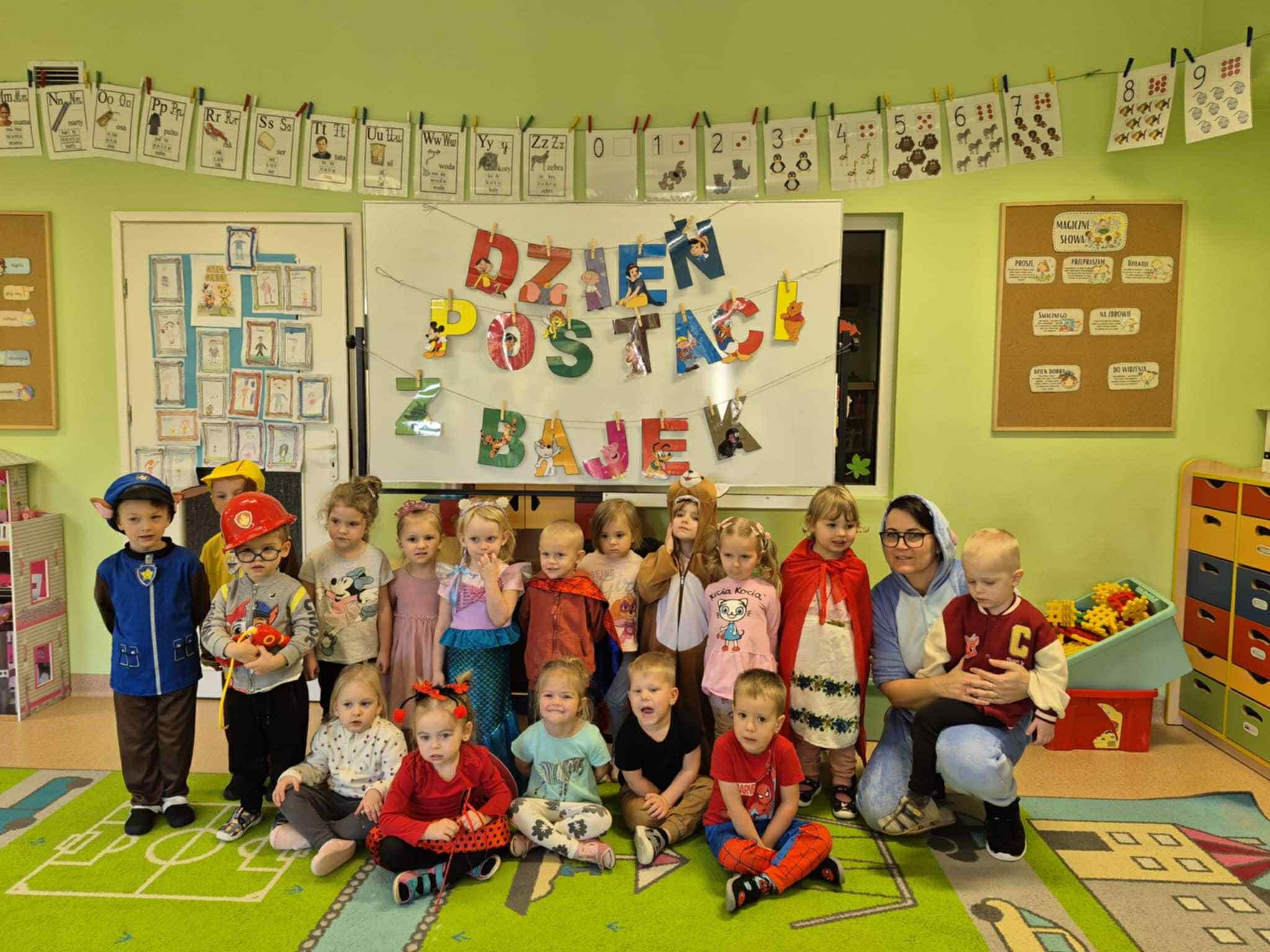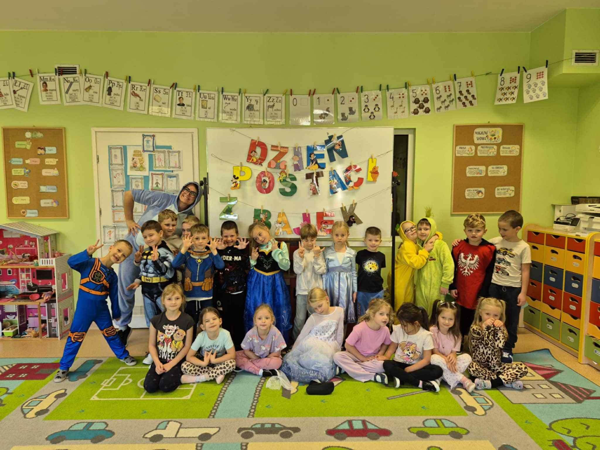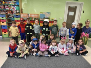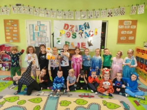 05.11. obchodzimy Dzień Postaci z Bajek, co stanowi okazję do przebrania się za ulubionego bohatera. W tym dniu przedszkolaki mogły zaprezentować swoje ukochane postaci z bajek. Podczas zajęć dzieci pomagały przyporządkować właściwe atrybuty postaciom z bajek, wykazując się przy okazji sporym zasobem wiedzy na ten temat. Przedszkolaki podczas pracy zespołowej wcieliły się w pomocników Kopciuszka i pomogły posegregować dary jesieni, a na zakończenie wykonały pracę plastyczną ozdabiając maski postaci z bajek.