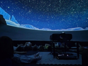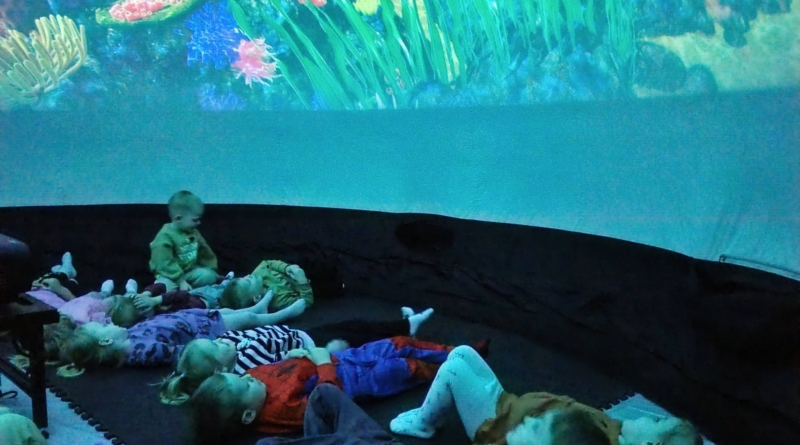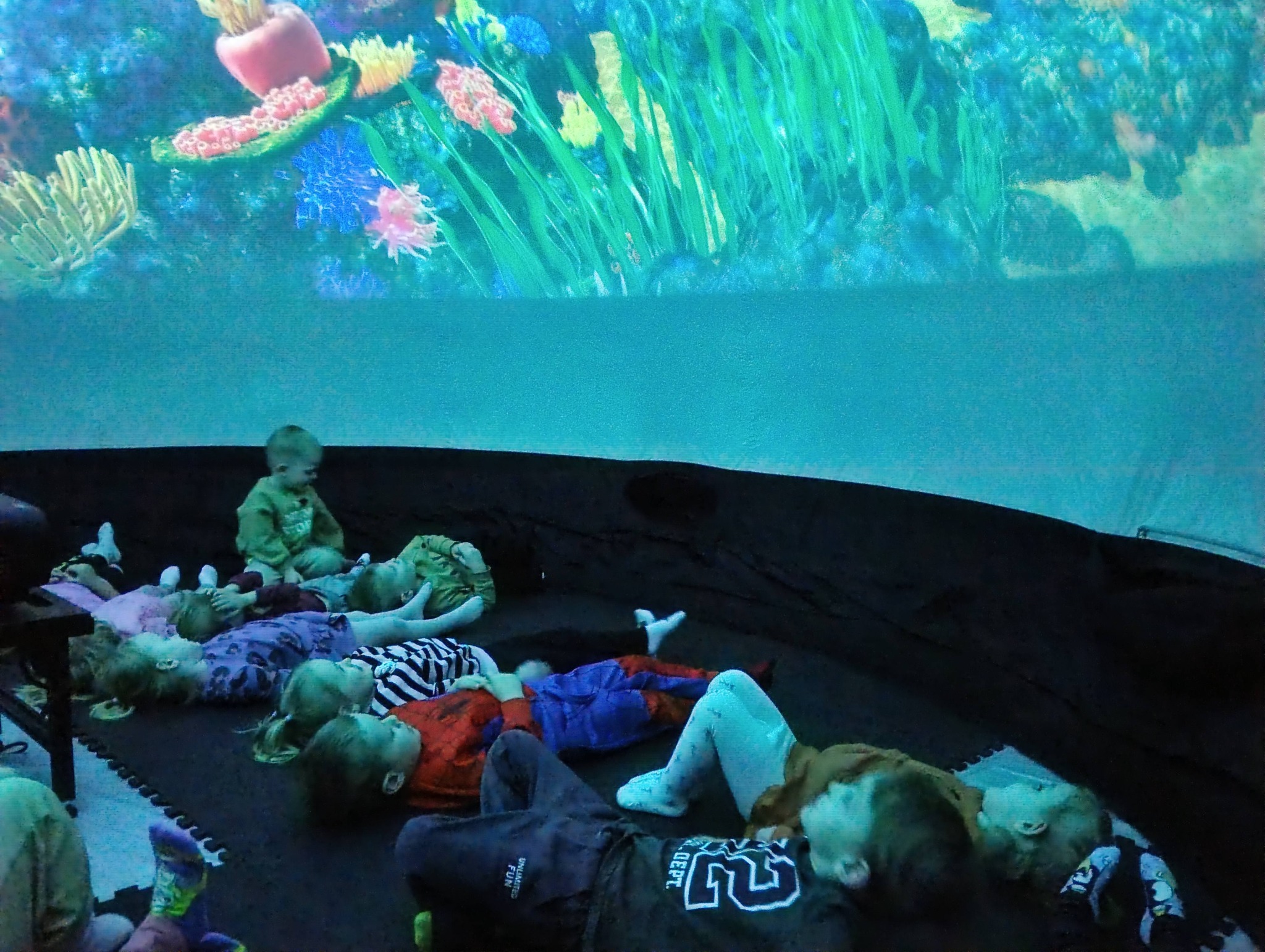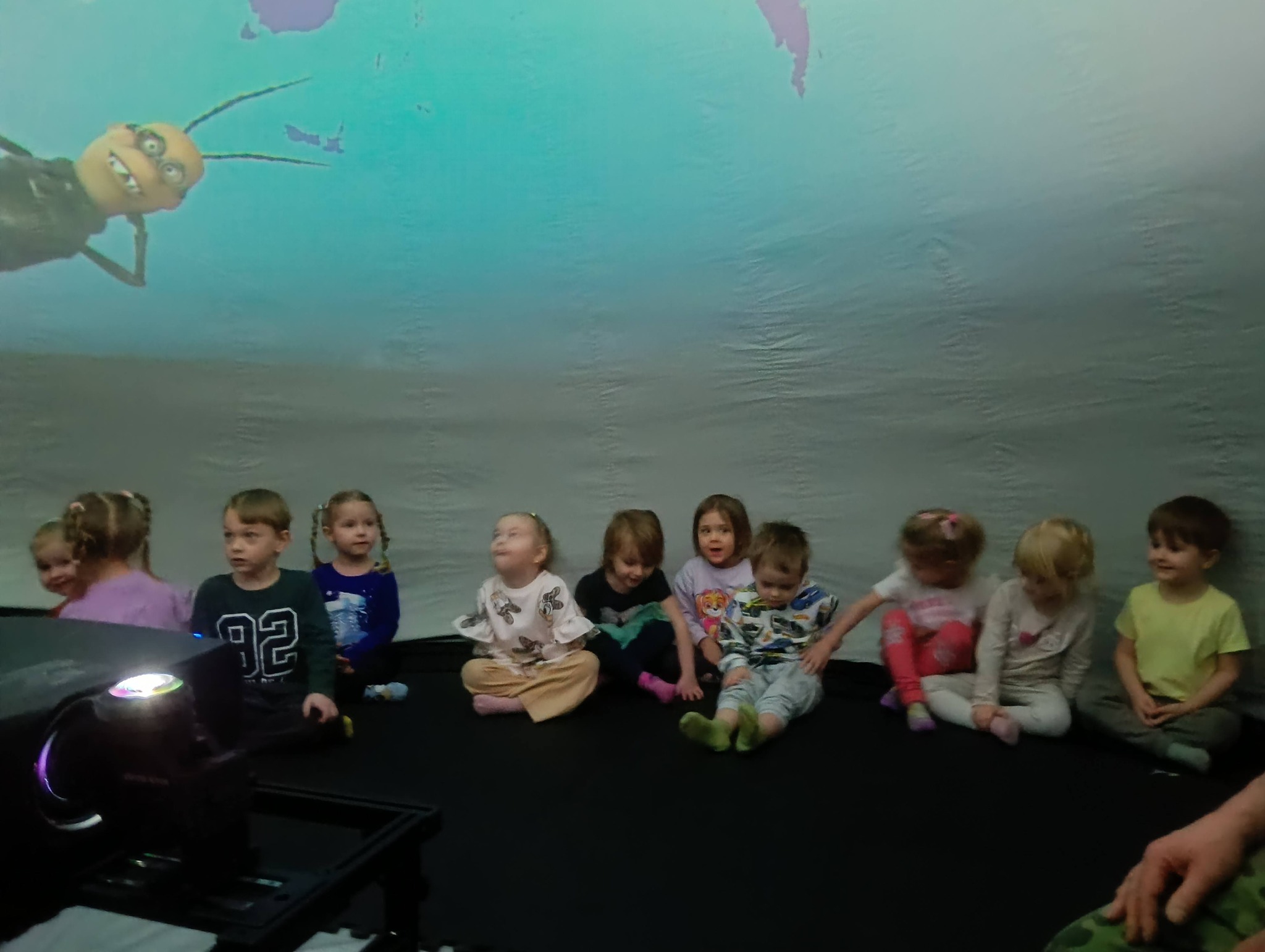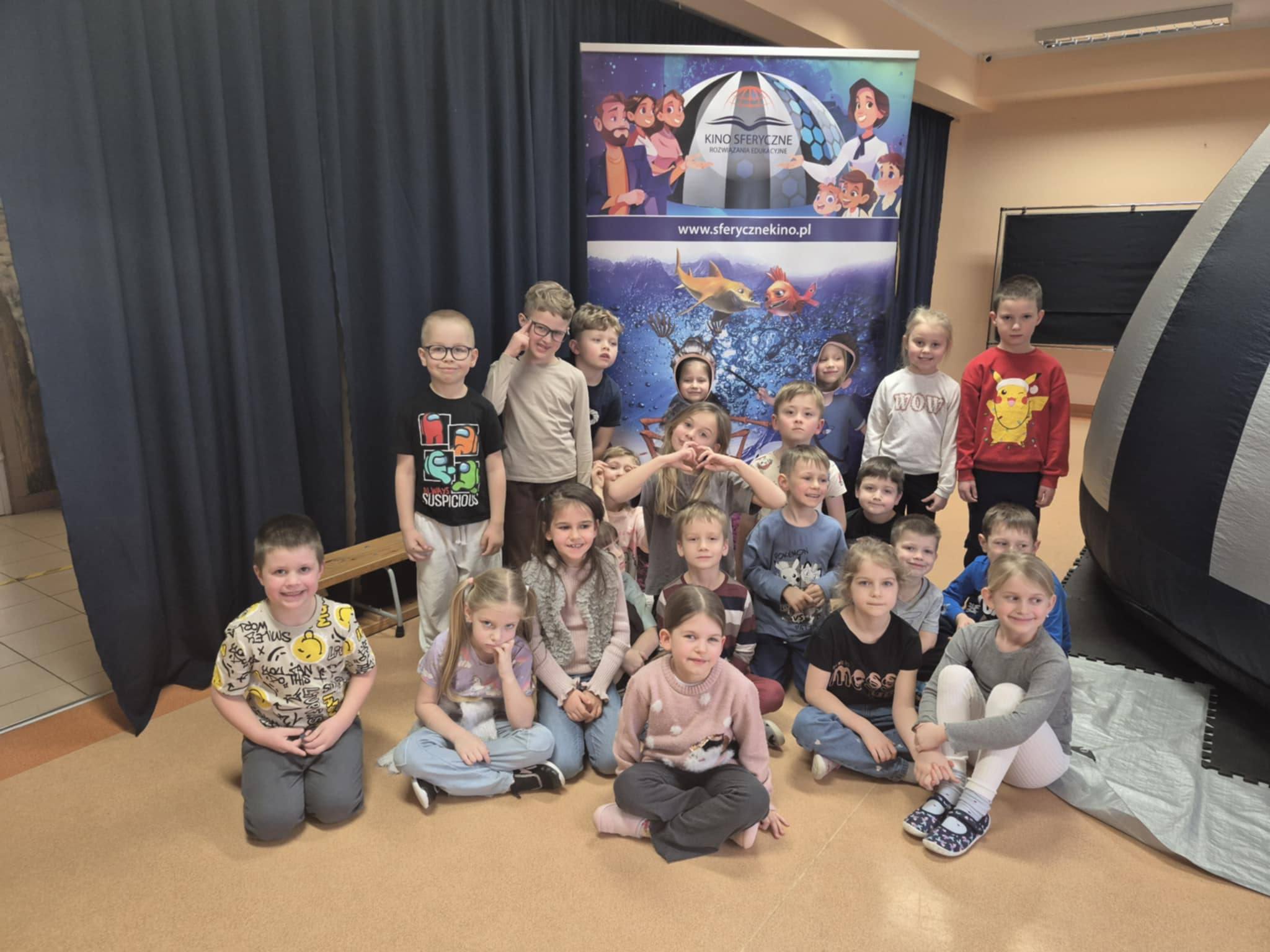 W naszym przedszkolu odbyło się wyjątkowe wydarzenie – odwiedziło nas mobilne kino sferyczne. Ogromna kopuła okazała się niezwykłą przestrzenią edukacyjną. Dzieci uczestniczyły w seansie, przenosząc się w fascynujący świat podwodnych głębin oraz kosmosu. Dzięki technologii 360° oraz realistycznym efektom wizualnym i dźwiękowym przedszkolaki mogły poczuć się tak, jakby naprawdę zanurzyły się w oceanie lub spacerowały wśród gwiazd. Seans dostarczył wielu emocji i radości. To była niezwykła lekcja przyrody w nowoczesnej i bardzo angażującej formie!