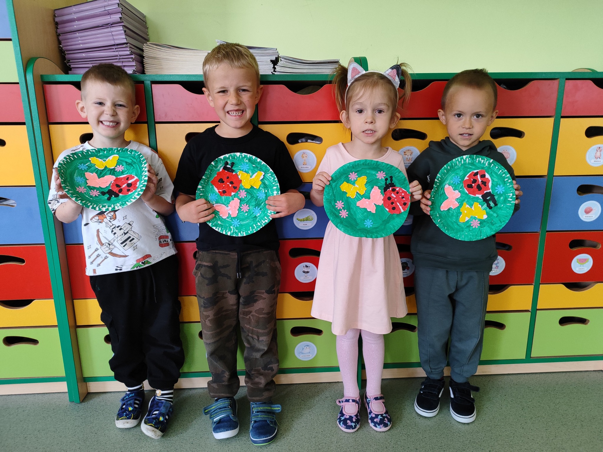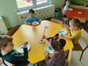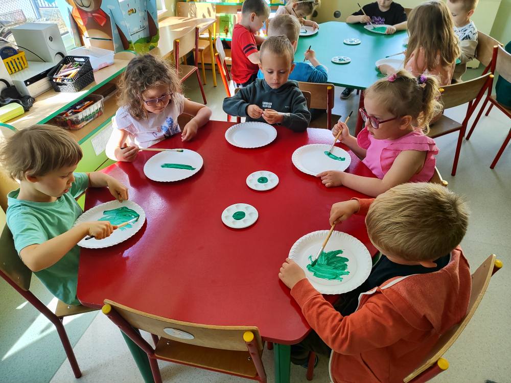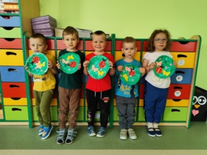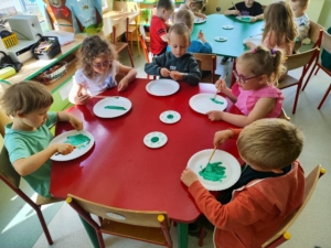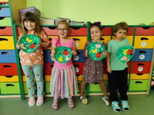 „Biedronki” poznały już jak wygląda majowa łąka oraz jakie dźwięki możemy na niej usłyszeć. Dostrzegły jej piękno i różnorodność barw. Dziś na zajęciach plastycznych wykonały swoje piękne i kolorowe łąki.