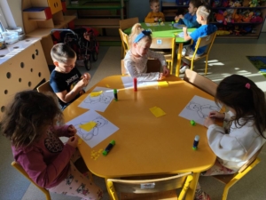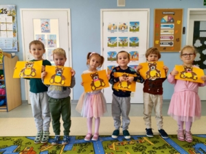 Dziś w grupie „Słoneczek” odbyły się zajęcia poświęcone misiom – bohaterom dziecięcych książek, bajek i przytulnych zabaw. Przedszkolaki rozpoznawały misie ze swoich ulubionych bajek i poznały historię pierwszego misia na świecie. Rozmawialiśmy, także o tym jak wyglądają prawdziwe niedźwiedzie oraz gdzie mieszkają. W części plastycznej zajęć przedszkolaki wykonały portrety misiów. Każde dziecko stworzyło własnego, niepowtarzalnego misia, a gotowe prace stworzyły „misiową galerię” na przedszkolnym korytarzu.