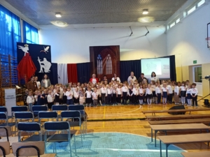 Narodowe Święto Niepodległości obchodzimy corocznie 11 listopada dla upamiętnienia odzyskania niepodległości przez Polskę w 1918r. po 123 latach zaborów. Z tej okazji organizowane są marsze patriotyczne, wiece, wieczornice, składa się kwiaty w miejscach pamięci ważnych dla historii Polski. Dzieci z naszego przedszkola również uroczyście obchodzą to ważne dla Polski święto. Rozmawiają o symbolach narodowych, wykonują prace plastyczne, biorą udział w akcji „Szkoła do hymnu”. 6 – letnie dzieci uczestniczą też w koncercie „Polsce śpiewam” pod hasłem ” W cieniu królewskiej korony”. Obchodom wspomnianego święta towarzyszył podniosły nastrój, powaga i szacunek.