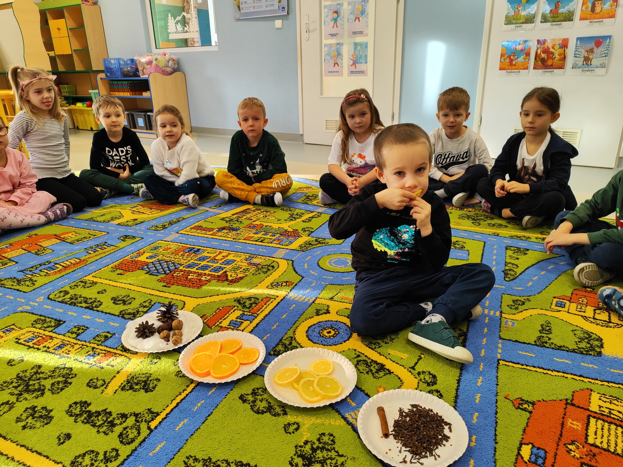 Dziś „Słoneczka” wykonały zadanie z Ogólnopolskiego Projektu Edukacyjnego „Kreatywny przedszkolak – kreatywne dziecko”. Przedszkolaki wykonywały zadania sensoryczne stymulujące ich zmysły. Rozpoznawaliśmy zapachy, wysłuchiwaliśmy różnego rodzaju dźwięków, a także stymulowaliśmy nasze ręce wykonując ozdoby świąteczne z masy solnej. Zabawy badawcze dostarczyły przedszkolakom wielu wrażeń, a dzięki nim dzieci mogły zadbać o rozwój poszczególnych zmysłów.