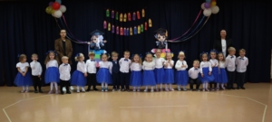 Po części artystycznej każde dziecko zostało uroczyście pasowane przez Panią Wicedyrektor, wchodząc tym samym do grona pełnoprawnych przedszkolaków i otrzymało pamiątkowy dyplom oraz drobny upominek.