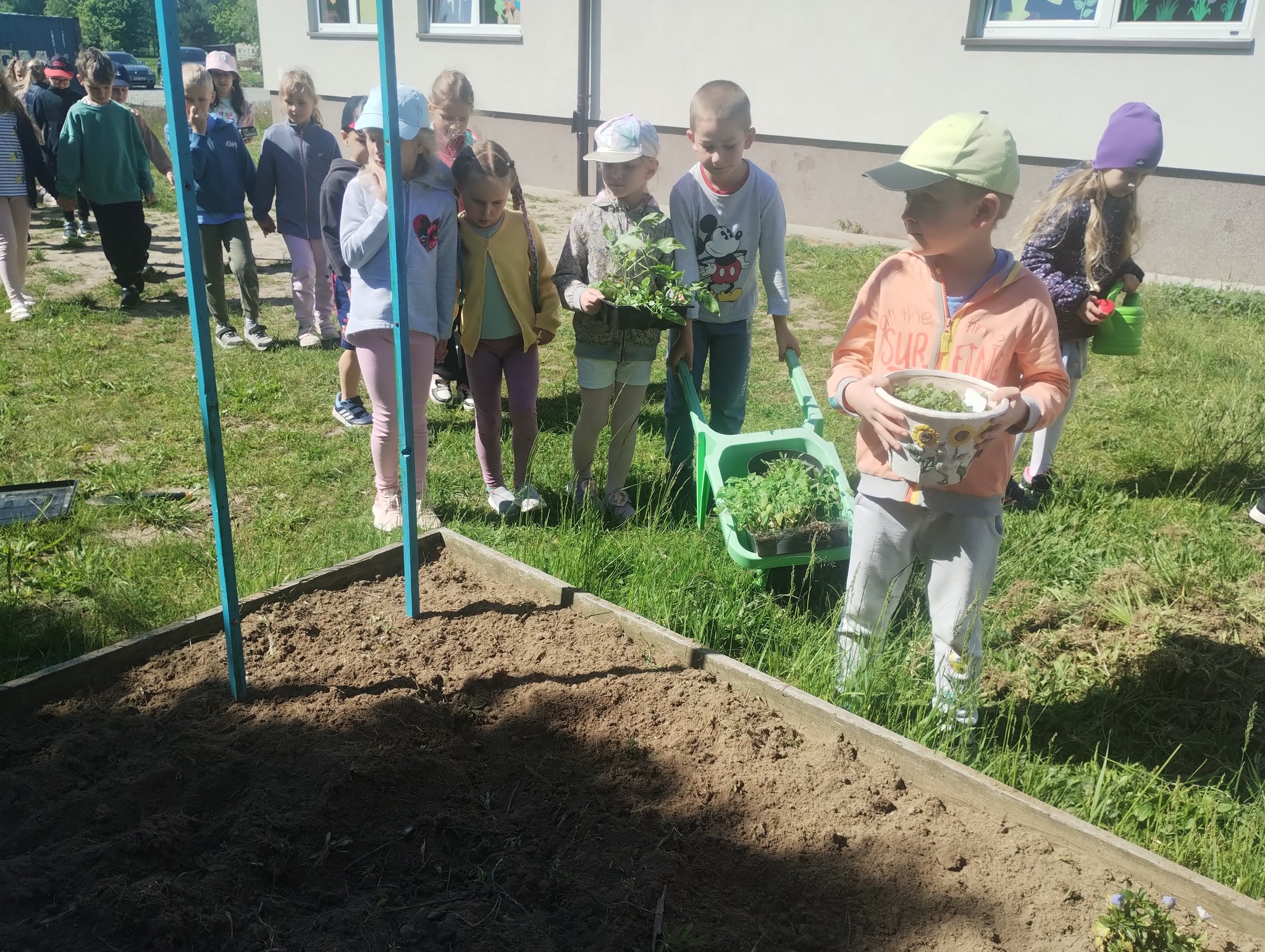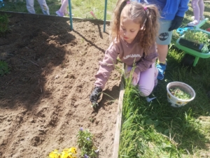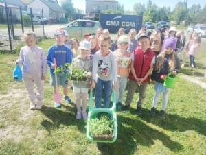Grupa „Gumisiów B” przygotowała przedszkolny ogródek. Po oporządzeniu ziemi przedszkolaki zasiały pomidory, szczypiorek, bazylię, rukolę i kolorowe bratki. Poprzez zastosowanie tej atrakcyjnej formy edukacji, dzieci kształtowały postawy ekologiczne, utrwalały wiedzę o etapach rozwoju i warunkach życia roślin a także obserwować zmiany zachodzące w wyglądzie roślin w ciągu roku.