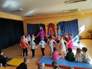 Dzisiaj w naszym przedszkolu odbył się kolejny spektakl teatralny pt. „Rubinowy Książe”. Aktorzy ze studia teatralnego Krak-Art przedstawili przedszkolakom spektakl przeplatany orientalną muzyką. Barwne, piękne kostiumy i scenografia w pełni oddały baśniową atmosferę. Wesoło przedstawione niektóre wątki spektaklu, zapewniły wszystkim dobrą zabawę. Ta piękna baśń uczy, że nadmierna ciekawość, brak poszanowania dla czyichś sekretów i wścibstwo, mogą czasem zgubić. Wszystkie dzieci z zaciekawieniem i zaangażowaniem obejrzały spektakl.