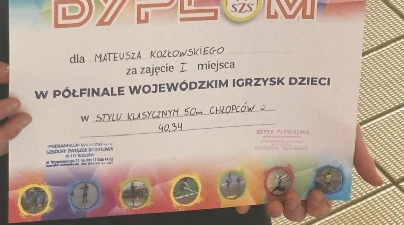 Mateusz osiągnął ogromny sukces, zdobywając I miejsce w swojej kategorii wiekowej na dystansie 50 m stylem klasycznym. To kolejny znakomity wynik ucznia, który regularnie reprezentuje naszą szkołę w zawodach sportowych, osiągając wysokie rezultaty i udowadniając, że jest prawdziwym sportowcem.