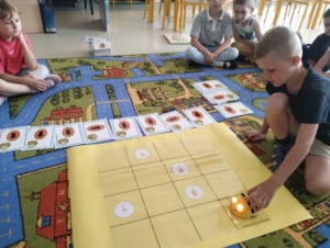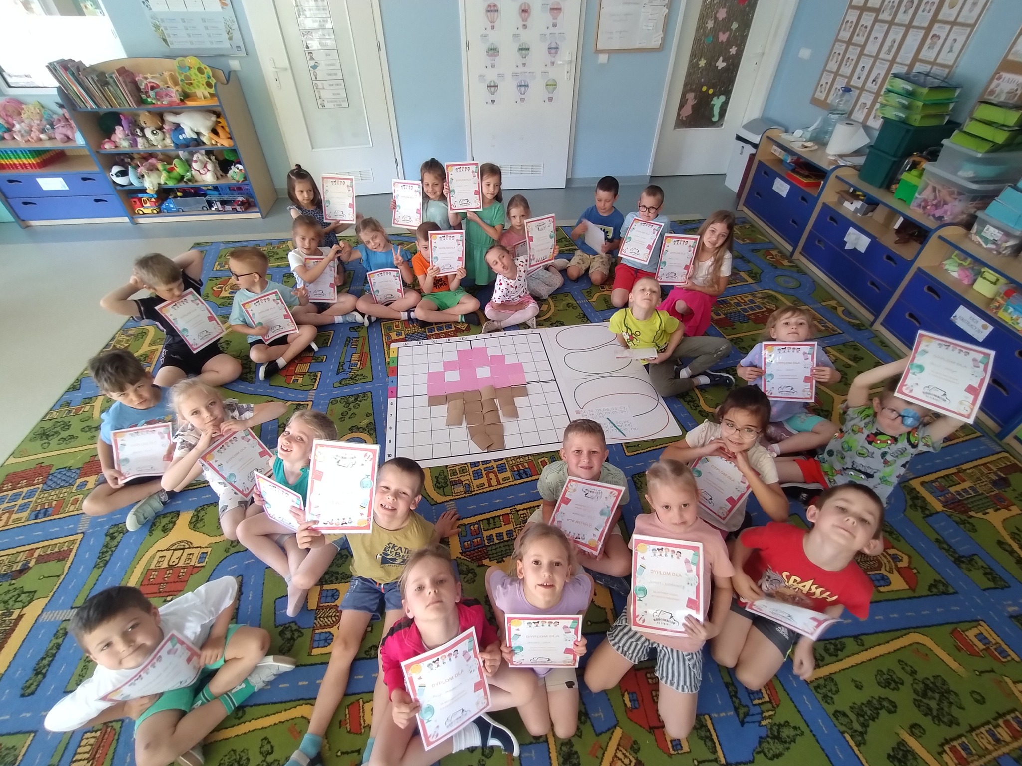 Przez ostatni rok, nasi mali programiści z grupy „Gumisiów B „z zapałem odkrywali świat kodowania poprzez zabawę, kreatywne zadania i wspólne wyzwania. Dzięki kolorowym matom, kartom , pszczółki BEE BOT oraz własnej wyobraźni dzieci nauczyły się logicznego myślenia, współpracy oraz podstaw programowania – wszystko to w atmosferze radości i wzajemnego wsparcia. Na zakończenie projektu, każdy przedszkolak otrzymał dyplom kodera.