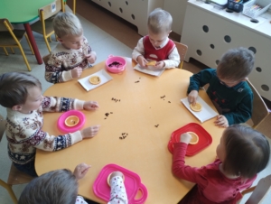 Grupa „Smerfów” odkryła kolejne zadanie z kalendarza adwentowego– tworzymy świąteczne aromatyczne ozdoby! Przedszkolaki suszyły plasterki pomarańczy i cytryn, a do tego dodały pachnące goździki. Już sam zapach wprowadza nas w świąteczny nastrój! Smerfy ozdobiły owoce, z których powstaną piękne dekoracje na choinkę.