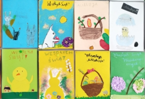 Jak co roku w naszej szkole odbył się Szkolny Konkurs Plastyczny „Kartka Wielkanocna”. Celem konkursu było rozwijanie kreatywności uczniów, kultywowanie tradycji związanych ze Świętami Wielkanocnymi oraz zachęcanie dzieci do twórczego spędzania czasu. W konkursie wzięli udział uczniowie klas I-III, którzy przygotowali piękne i pomysłowe kartki wielkanocne, wykorzystując różnorodne techniki plastyczne. Na pracach pojawiły się tradycyjne symbole świąt, takie jak kolorowe pisanki, zajączki oraz wiosenne kwiaty. Wszystkie kartki zachwycały starannością wykonania i bogactwem barw.