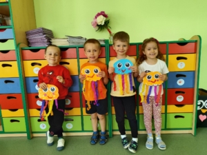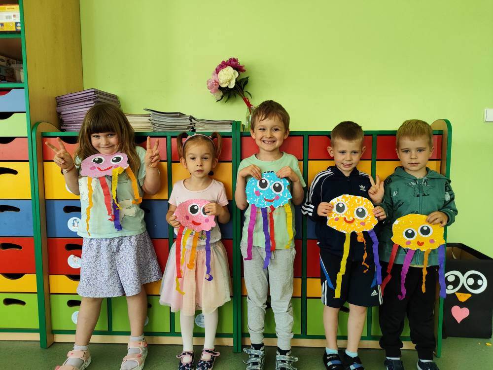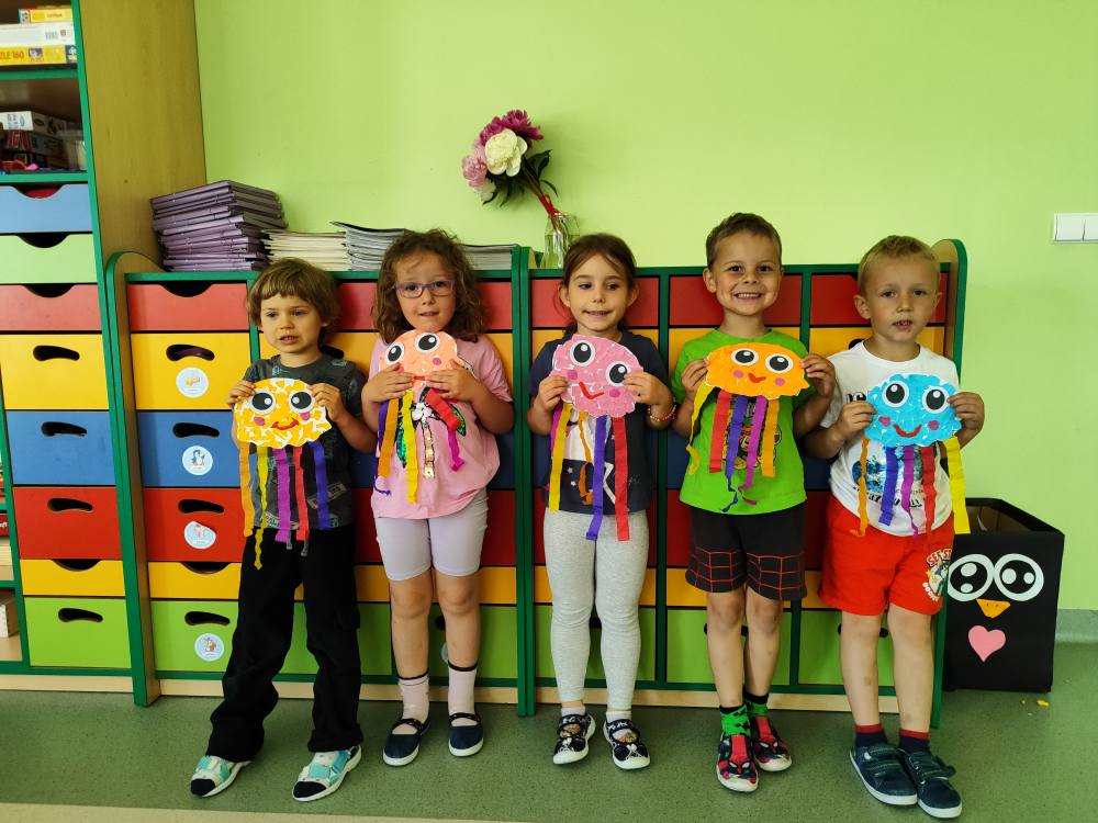 Wakacje zbliżają się wielkimi krokami. Wszystkie przedszkolaki z niecierpliwością oczekują już wakacyjnych przygód i niezapomnianych wrażeń. Dziś na zajęciach plastycznych dzieci wykonały kolorowe meduzy.