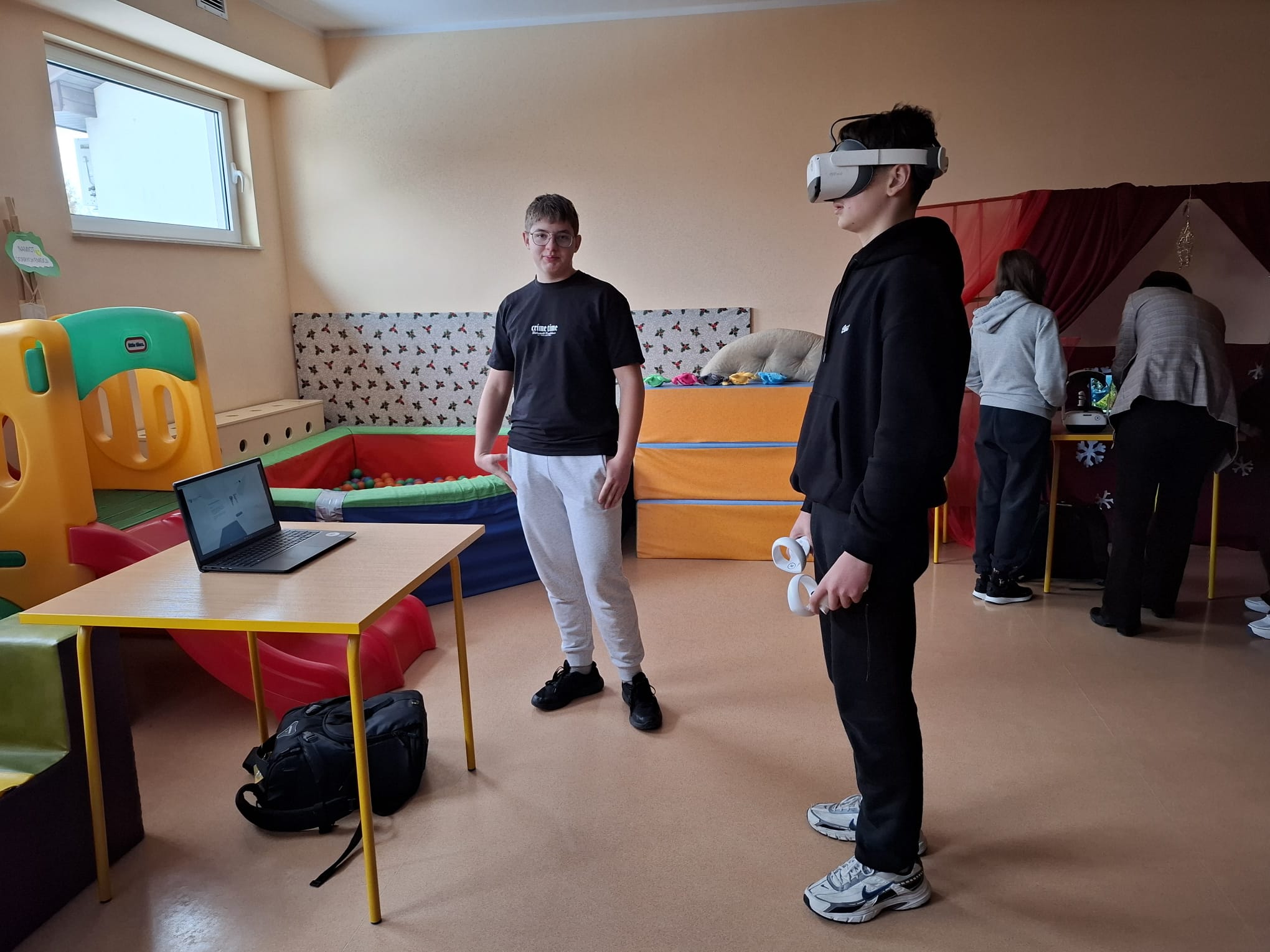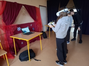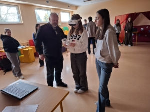 Podczas spotkania zaprezentowano możliwości poznawania różnych zawodów z wykorzystaniem nowoczesnej technologii – gogli VR. Uczniowie klasy 8 mieli okazję „przenieść się” do środowiska pracy przedstawicieli różnych profesji, m.in. technicznych, medycznych, usługowych i przemysłowych, obserwując zakres obowiązków oraz warunki pracy w realistyczny i interaktywny sposób. Każdy miał możliwość obejrzenia symulacji pracy w wybranym zawodzie.