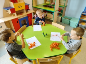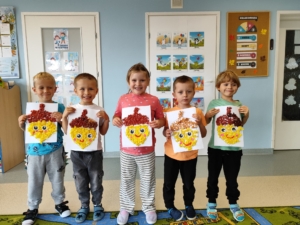 Jesień to wyjątkowa pora roku, którą dzieci w przedszkolu poznają poprzez zabawę i obserwację przyrody. Przedszkolaki z radością uczestniczą w zbieraniu darów jesieni takich jak liście, kasztany i żołędzie. Dziś na zajęciach plastycznych „Słoneczka” wykonały pracę pt. „Wesołe żołędzie”. Gotowe prace stworzyły nam piękną jesienną galerię.