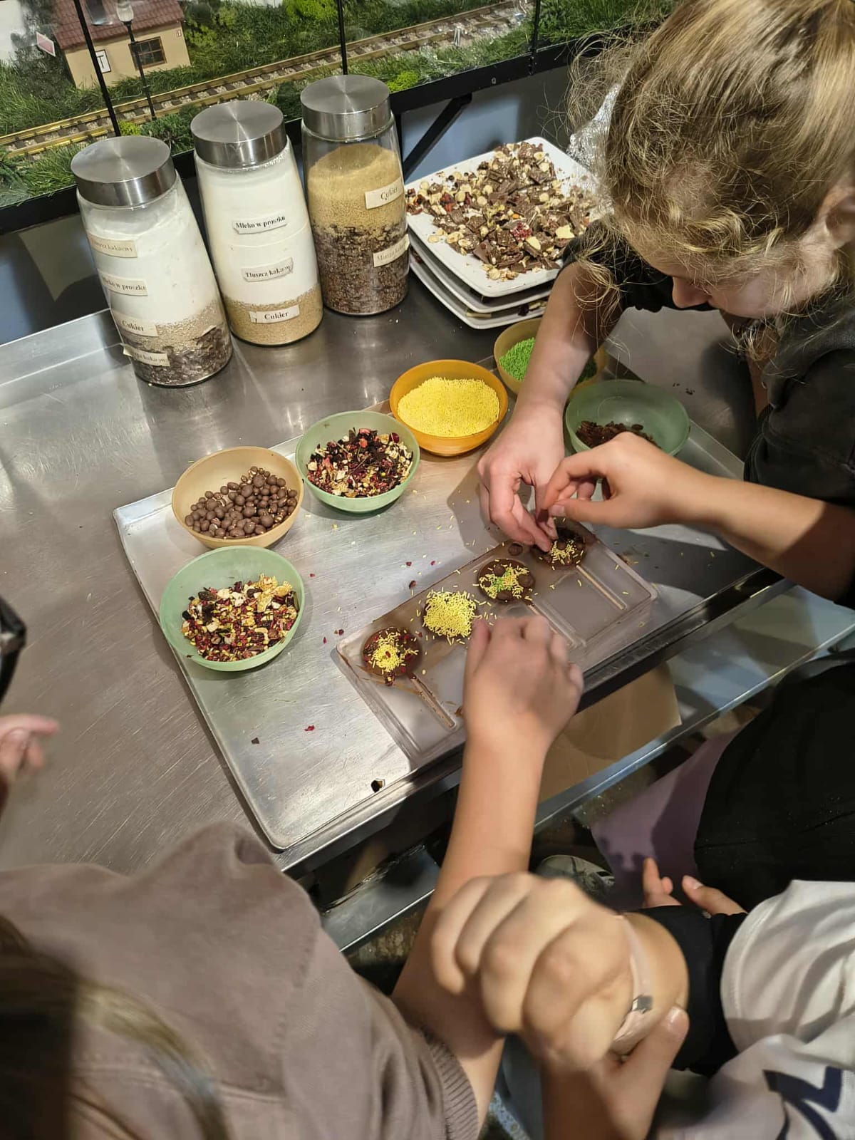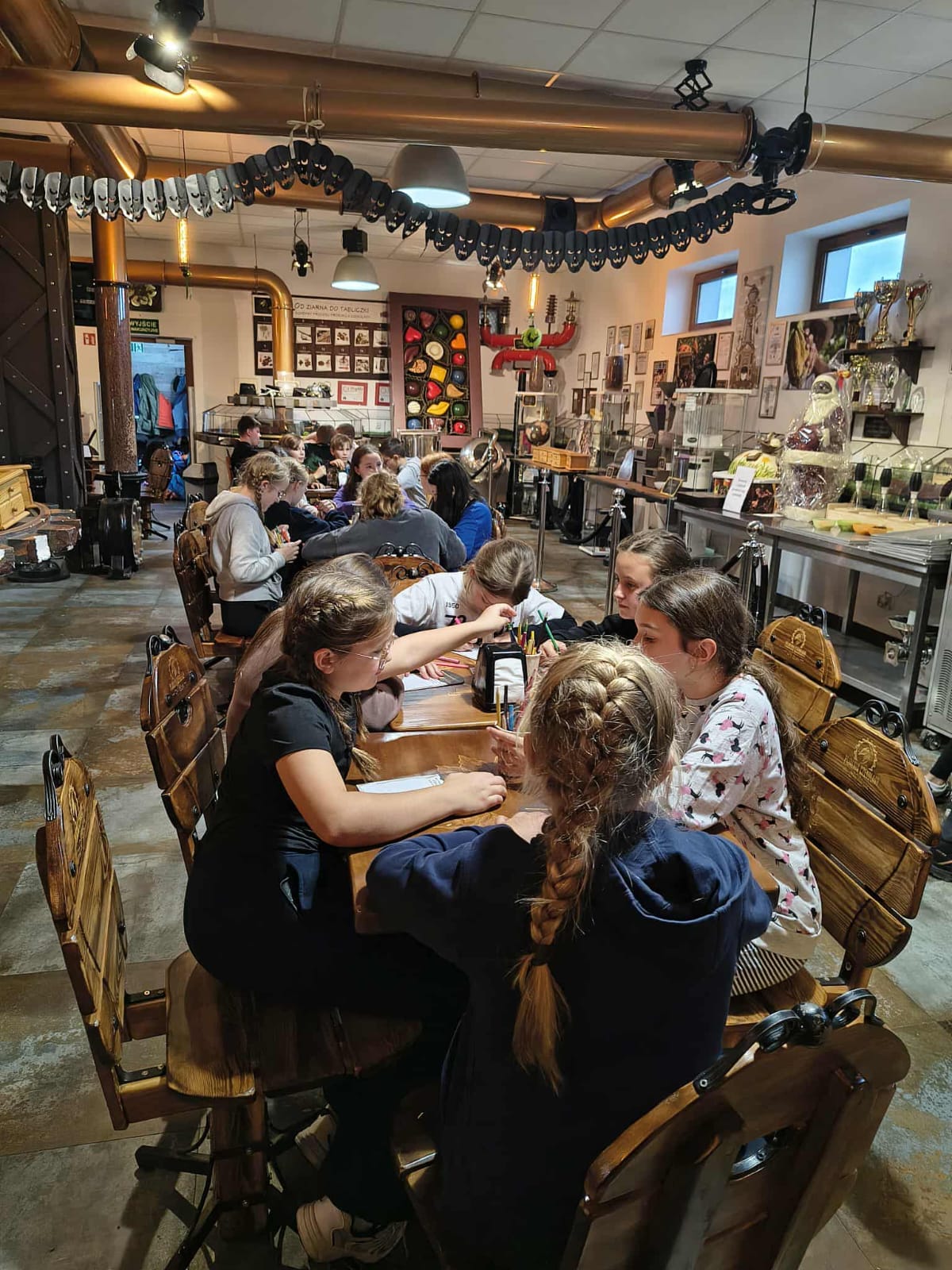 Na zakończenie wycieczki grupa odwiedziła Pijalnię Czekolady w Korczynie. Uczniowie mieli okazję zobaczyć, jak powstaje czekolada, a także spróbować różnych jej rodzajów. Nie zabrakło też słodkich zakupów i pamiątek.