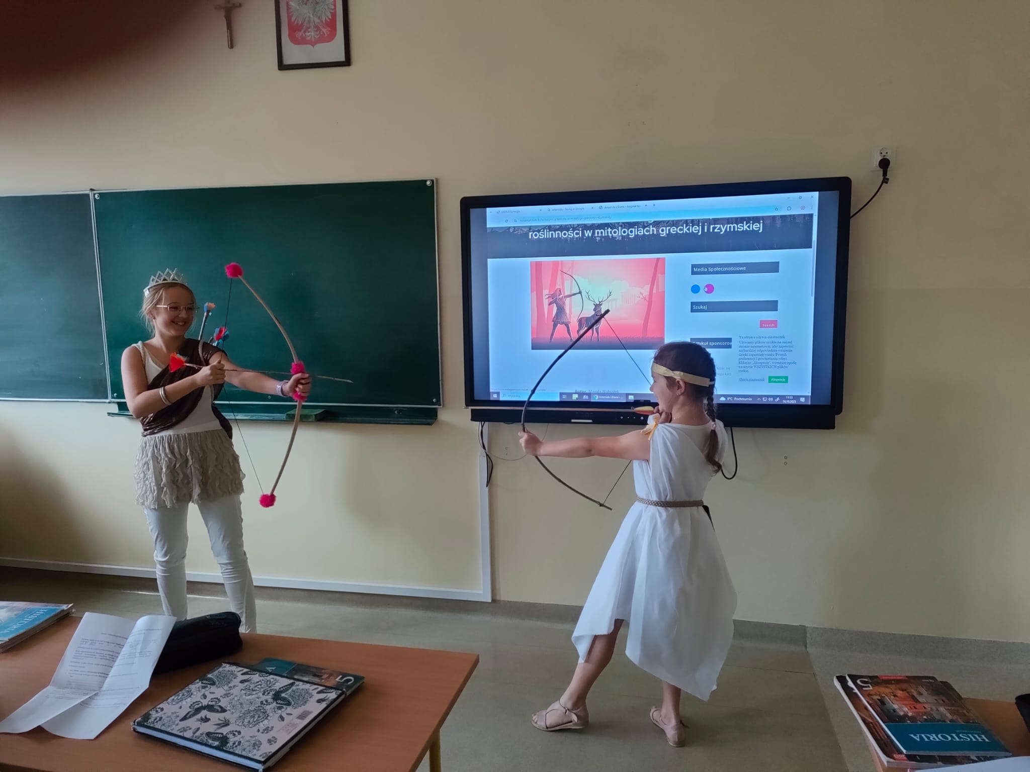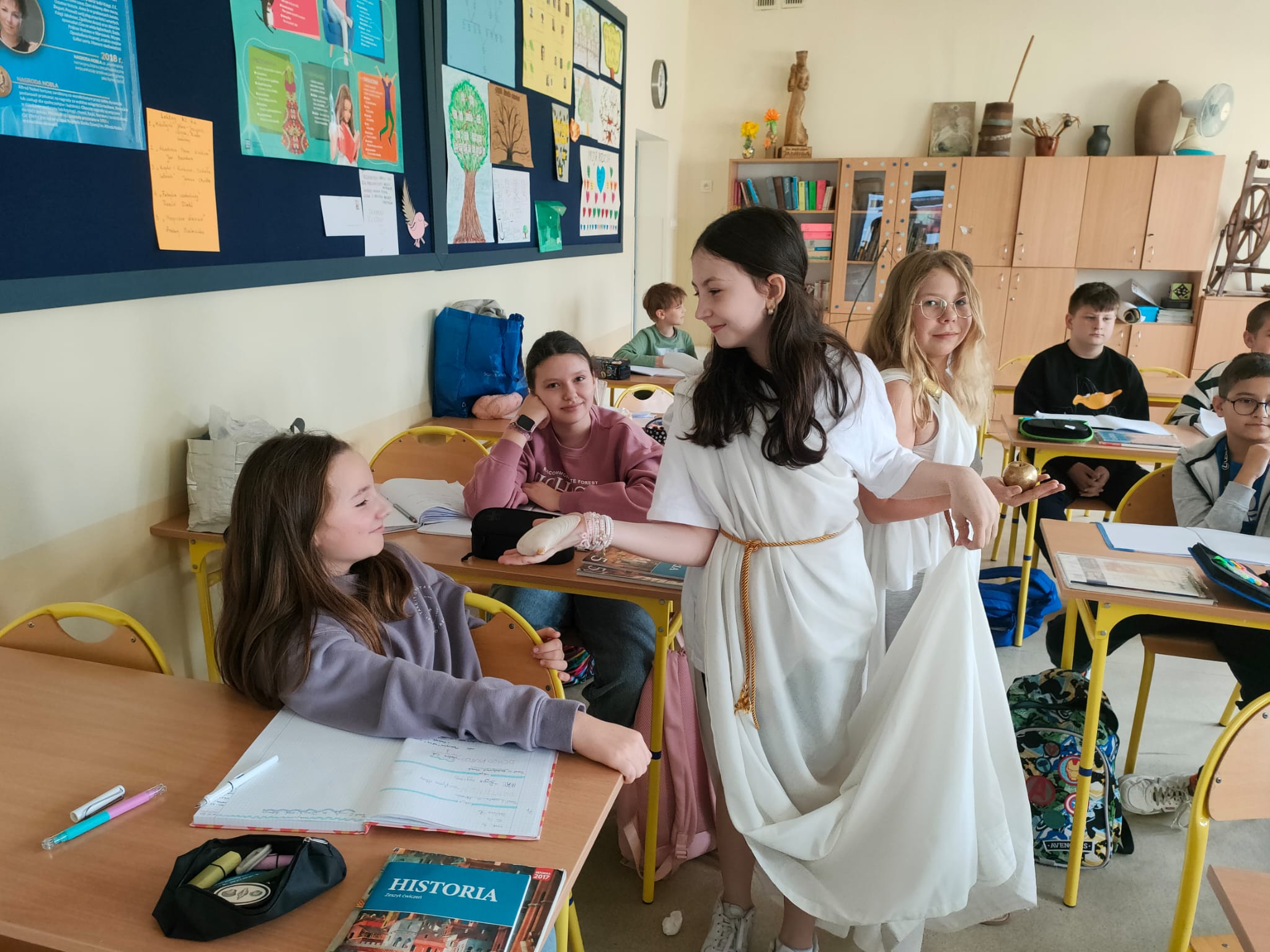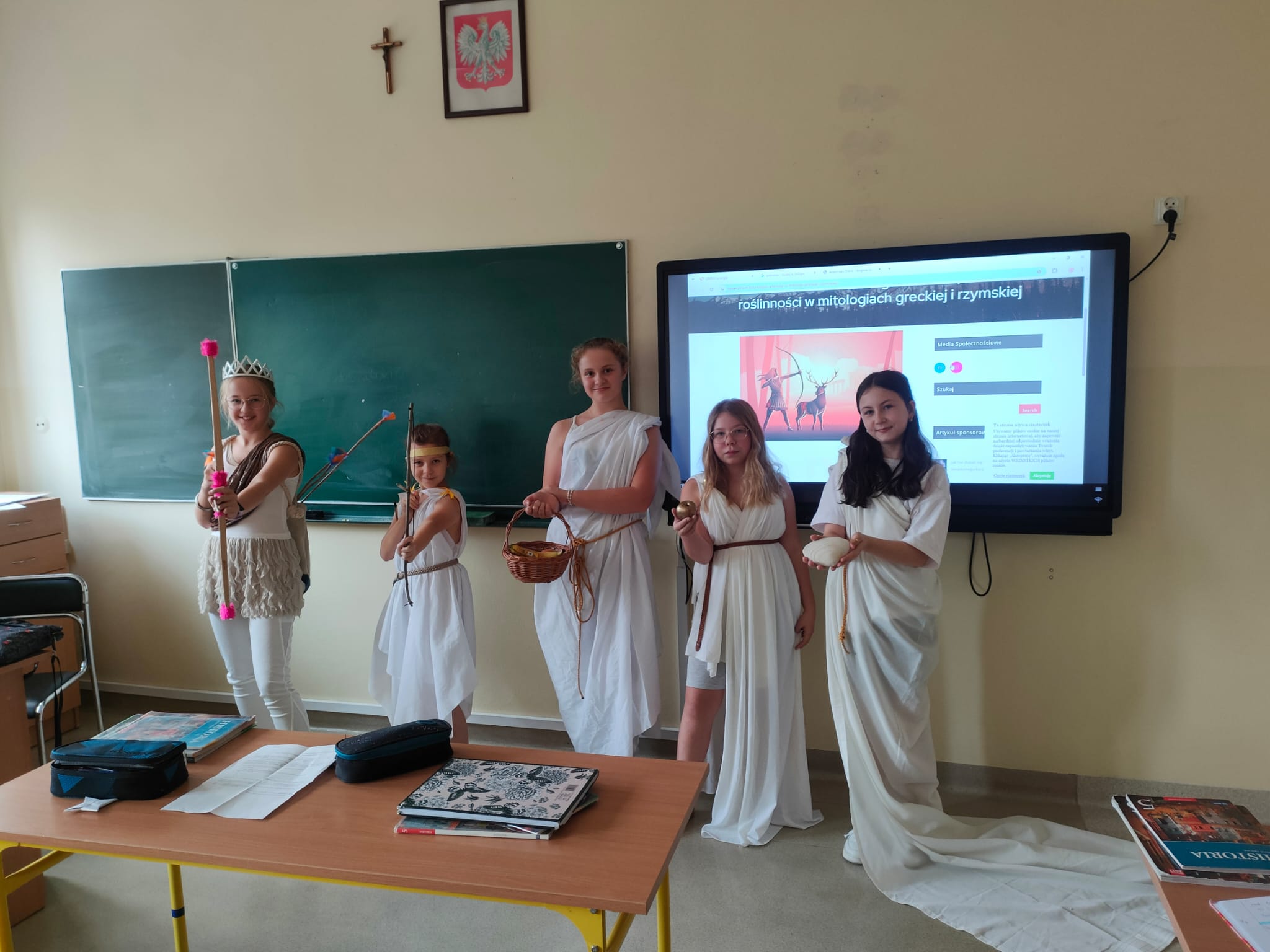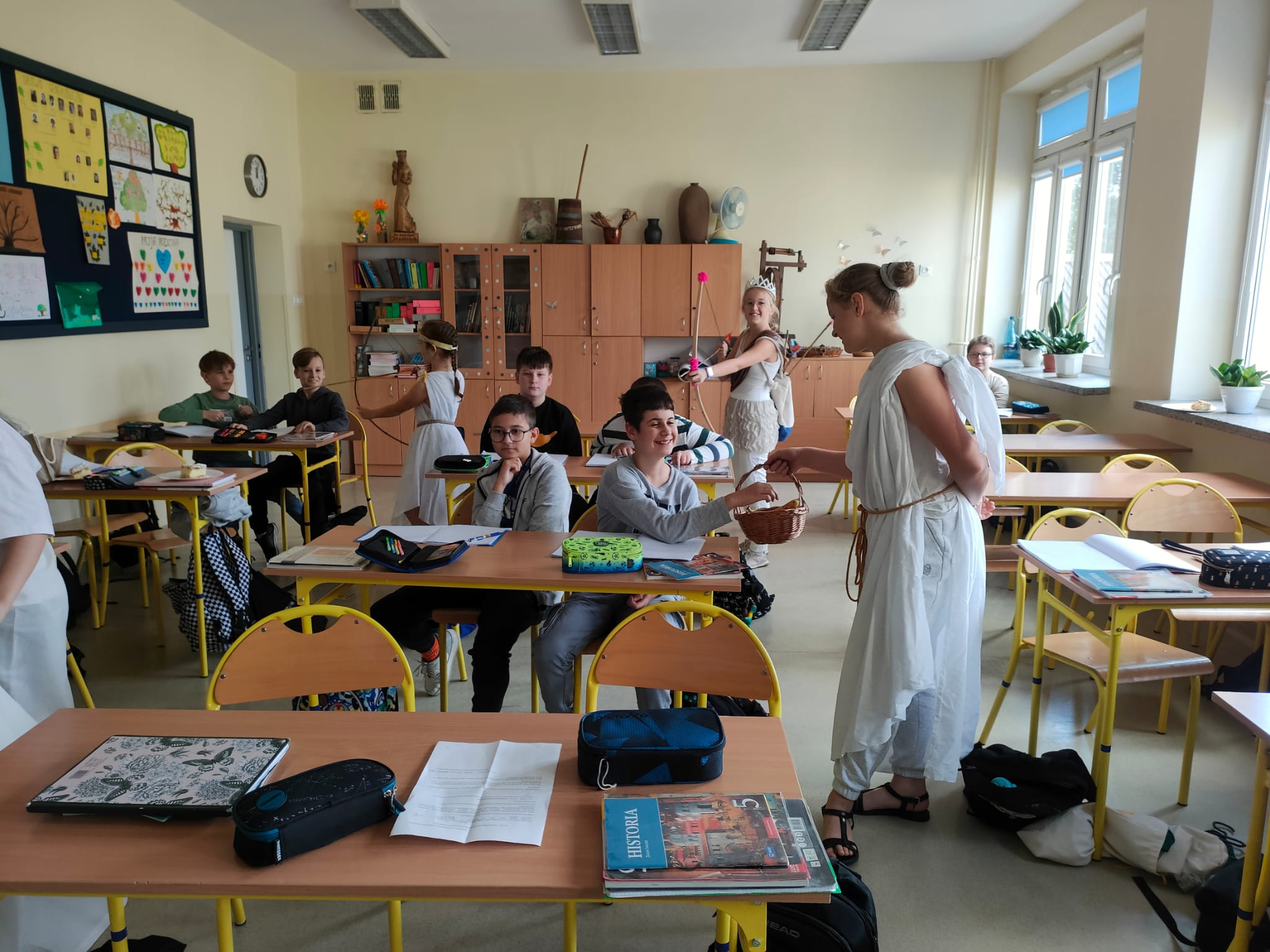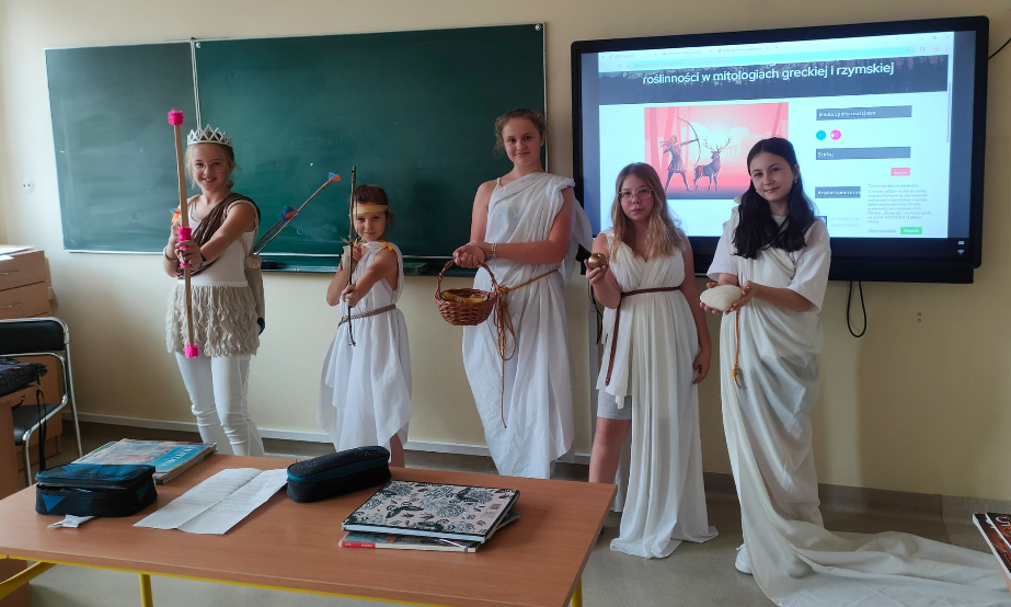 Lepiej raz coś zobaczyć niż 100 razy usłyszeć! Zgodnie z tą zasadą lekcja historii w klasie 5 nabrała rumieńców. Uczniowie wcielili się w rolę olimpijskich bogów greckich. Gościliśmy m.in. Afrodytę, Artemidę i mściwego Aresa. Zresztą proszę zobaczyć!