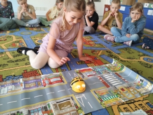 Przedszkolaki z grupy „Gumisie B” poznały niezwykłą pszczółkę BEE BOT. Dzieci uczyły się kodowania, a jednocześnie świetnie się bawiły. Rozwijały wyobraźnię przestrzenną, liczyły, utrwalały stronę prawa – lewa, aby pszczółka dotarła do wyznaczonego miejsca. Takie kodowanie to nie tylko nauka, ale przede wszystkim wspaniała zabawa!