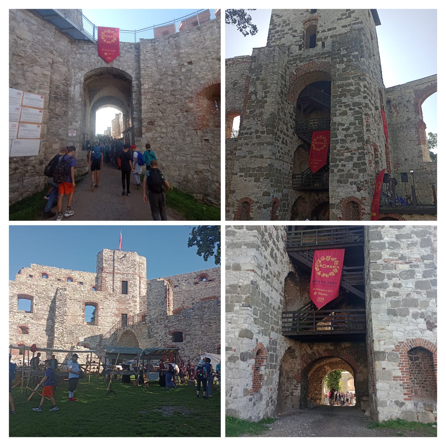 Jak się okazało mieliśmy spore szczęście, gdyż w dniu naszych odwiedzin wypadało – coroczne, hucznie celebrowane Święto Jury Krakowsko-Częstochowskiej – „Juromania”. Czyli zamiast spokojnego rozruchu wyszło turystyczne „trzęsienie ziemi”. I czego tam nie było…? Grupy rekonstrukcyjne, pokazy fechtunku, strzelanie z łuków, huk armat, stroje z epoki, kiermasze pamiątek, degustacje… to ostatnie akurat może pominiemy…!