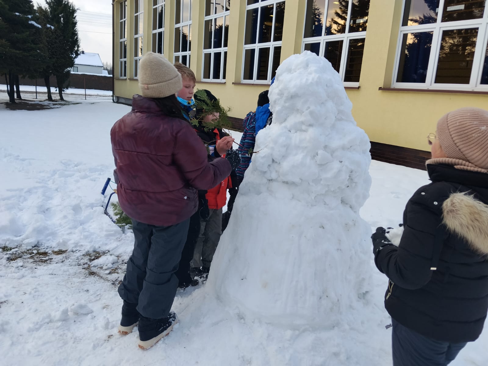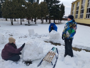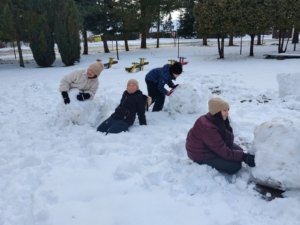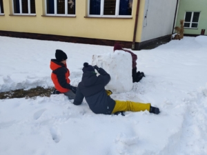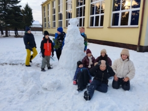 Głównym punktem zajęć było wspólne lepienie bałwana. Uczniowie wykazali się ogromną kreatywnością i umiejętnością pracy zespołowej – powstał prawdziwy śniegowy twór! Nie zabrakło również zdrowej rywalizacji podczas wyścigów na sankach, które wywołały mnóstwo śmiechu i pozytywnej energii.